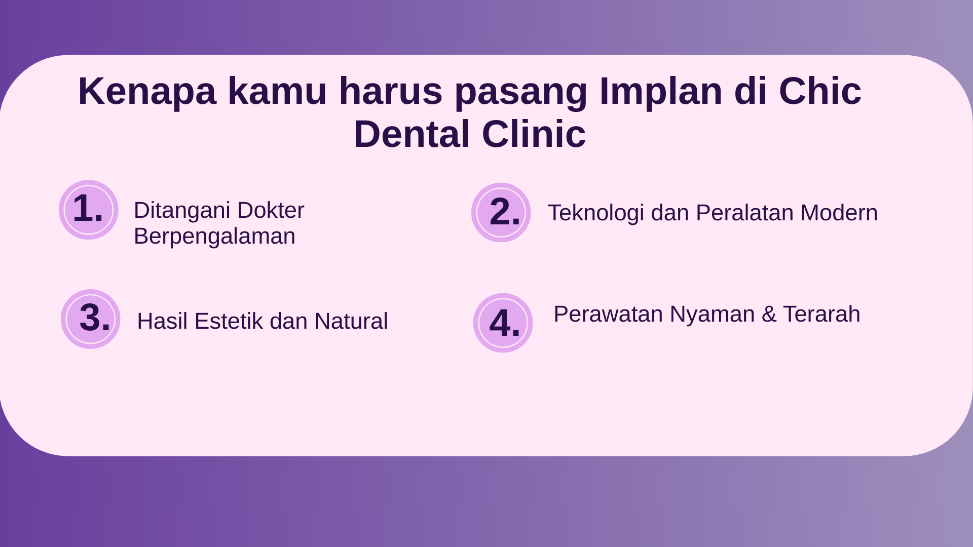Kalau kamu punya gigi yang hilang dan ingin solusi yang lebih permanen, implan gigi di Chic Dental bisa menjadi pilihan yang tepat untuk mengembalikan fungsi dan keindahan senyum kamu.